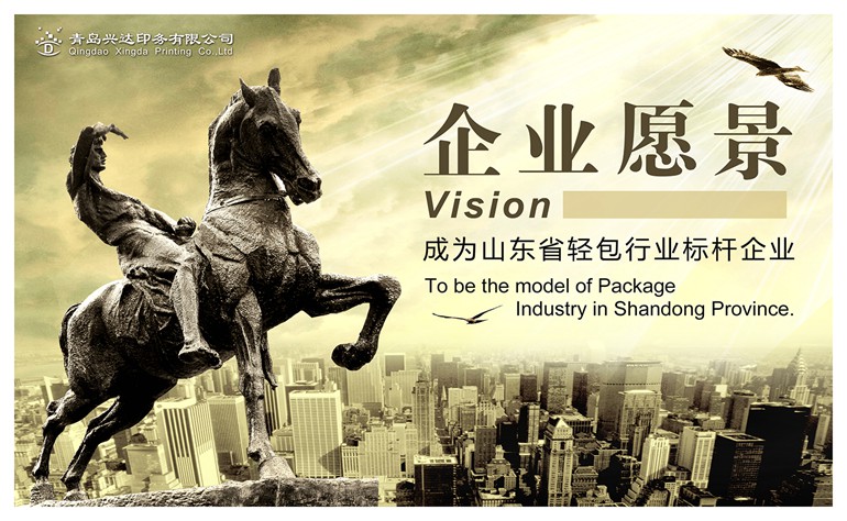 企业愿景:成为山东省轻包行业标杆企业使命三件事:为团队过上好日子,为客户创造价值,为社会承担责任核心价值:敬畏制度,真爱企业营销文化:专业,实干,服务, 生产文化:专注,实效,质量
